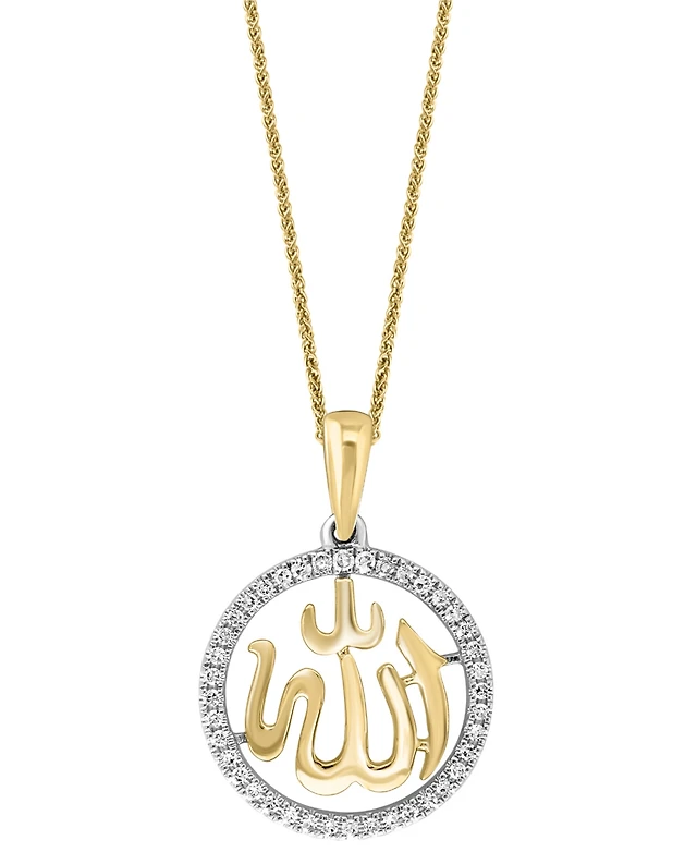 Diamond Allah 18" Pendant Necklace (1/10 ct. t.w.) in 14k Yellow & White Gold