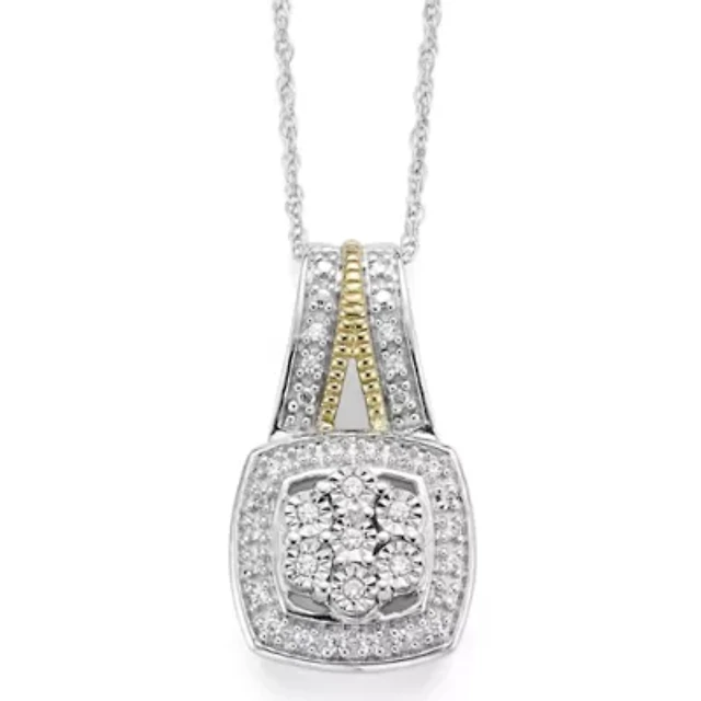 Diamond Blossom 1/10 CT.T.W. Natural Diamond Cushion Sterling SIlver with 14k Gold over SIlver Accent Pendant Necklace