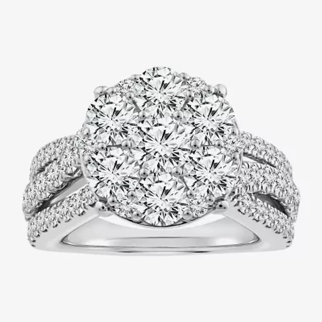 Diamond Blossom (G / Si2) Womens 2 CT. T.W. Lab Grown White 10K Gold Round Cocktail Ring