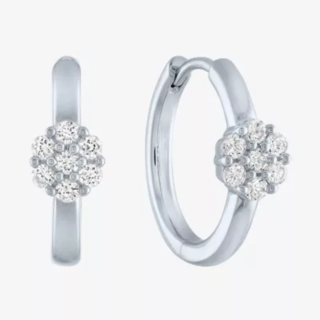 Diamond Blossom (G-H / Si2-I1) Womens 1/4 CT. T.W. Lab Grown White Diamond 10K White Gold 11.2mm Hoop Earrings