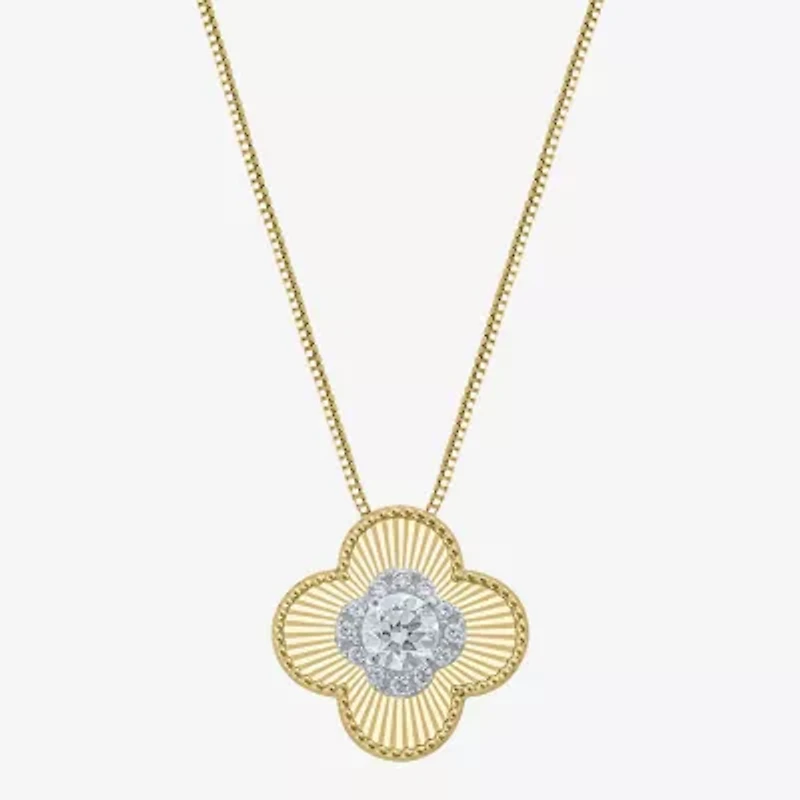 Diamond Blossom (G / Si2) Womens 1/2 CT. T.W. Lab Grown White Diamond 10K Gold Clover 18 Inch Pendant Necklace
