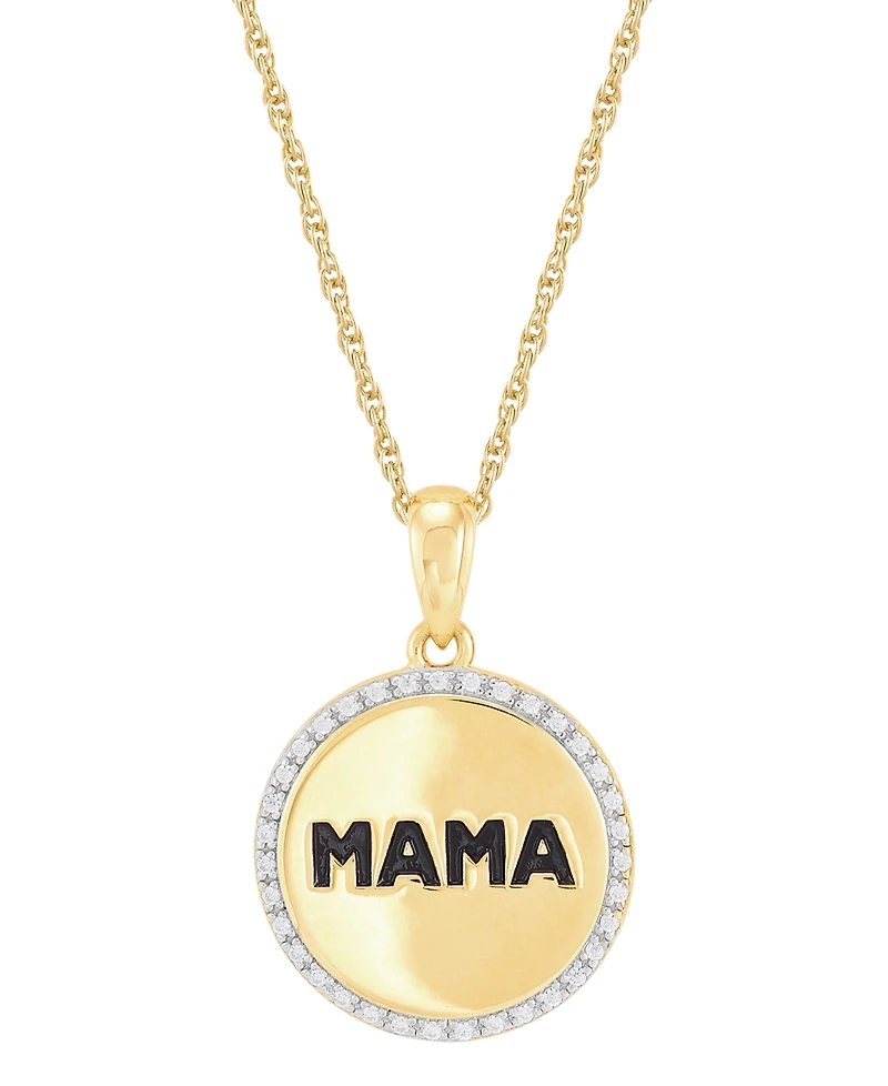 Diamond Mama Coin Pendant Necklace (1/10 ct. t.w.) in 14k Gold-Plated Sterling Silver, 16" + 2" extender