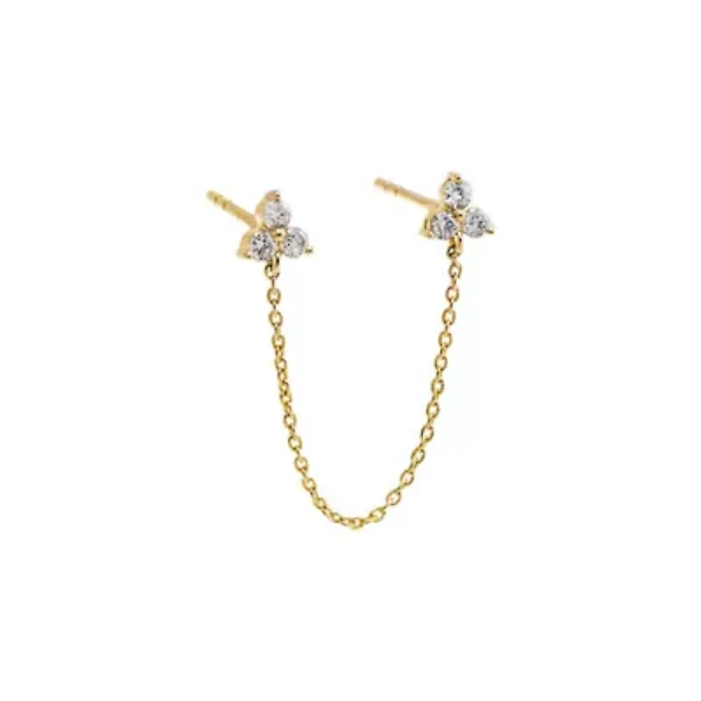 Diamond Trio Cluster Chain Double Stud Earring 14K