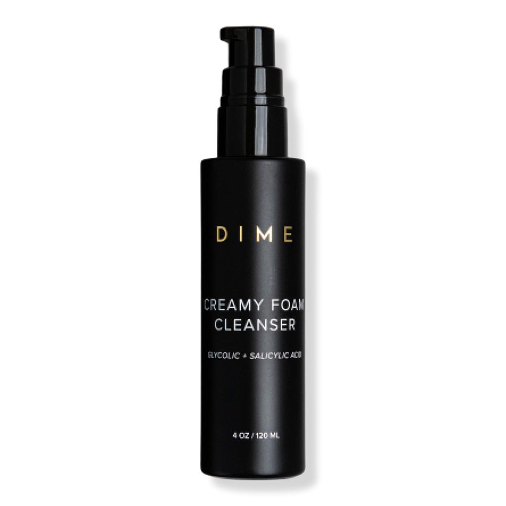 CREAMY FOAM CLEANSER 4.0OZ. Benefits: Dissolves dead skin cells to keep pores clean. Helps accelerate skin cell turnover. Key Ingredients: Salicylic Acid: Salicylic acid is a highly effective BHA (Beta Hydroxy Acid) that helps prevents pore clogging and assists in reducing swelling and redness. It is an effective treatment that helps clear blemishes quickly by penetrating pores and removing excess oil and bacteria.. Glycolic Acid: Glycolic acid is a powerful AHA (Alpha Hydroxy Acid), a natural component derived from sugar cane, known to improve uneven skin tone. This acid is designed to exfoliate and cleanse clogged pores while refining the skins texture and reducing the appearance of blemishes and scarring.. Formulated Without: Sulfates: DIME products never contain skin-irritating ingredients such as sulfates. Sulfate-free products are gentle on the skin and can help decrease the chances of an allergic reaction.. Phthalates: Certain phthalates (like Dibutyl Phthalate, aka DBP, or DEHP, and DEP) appear on product labels, but most typically remain unlisted, hiding under the term fragrance. Since some phthalates have been linked to hormone disruption, DIME avoids them..