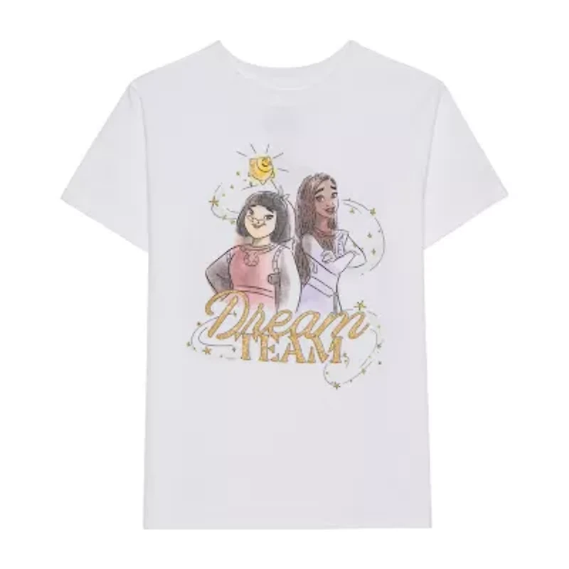 Disney Collection Little & Big Kid Girls Crew Neck Short Sleeve Boxy Fit Wish Graphic T-Shirt