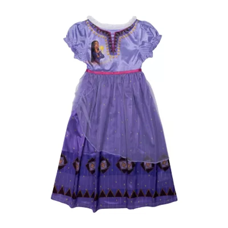 Disney Collection Wish Little & Big Kid Girls Satin Crew Neck Short Sleeve Nightgown