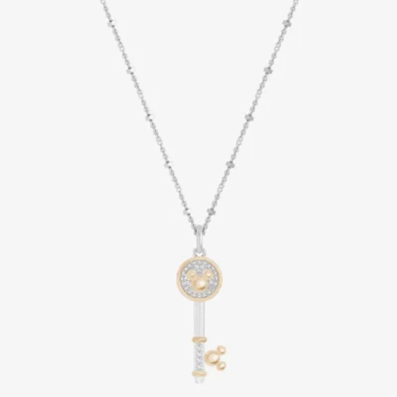 Disney Jewels Collection Mickey Mouse Womens 1/8 CT. T.W. Natural White Diamond 14K Gold Over Silver Sterling Silver Keys 18 Inch Pendant Necklace