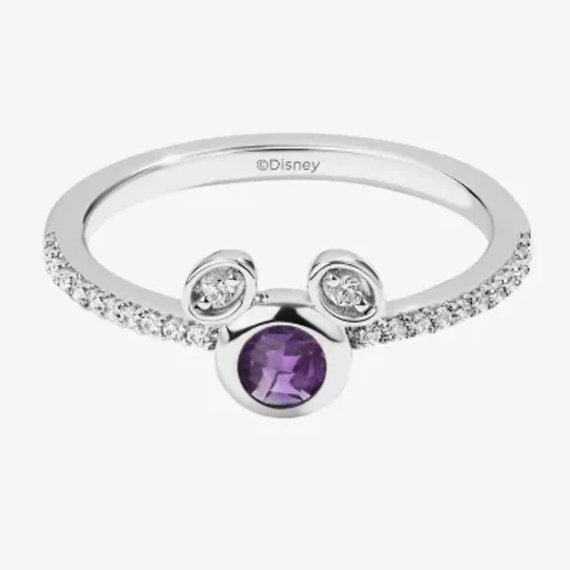 Disney Jewels Collection Womens 1/7 CT. T.W. Gemstone Sterling Silver Mickey Mouse Stackable Ring