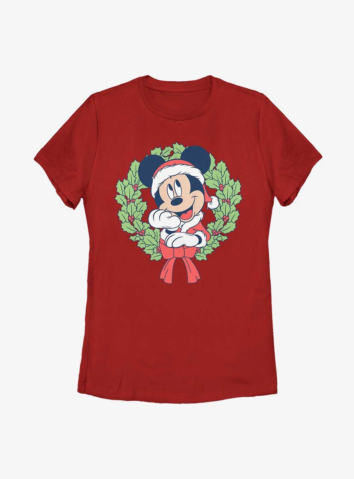 Disney Mickey Mouse Christmas Wreath Womens T-Shirt