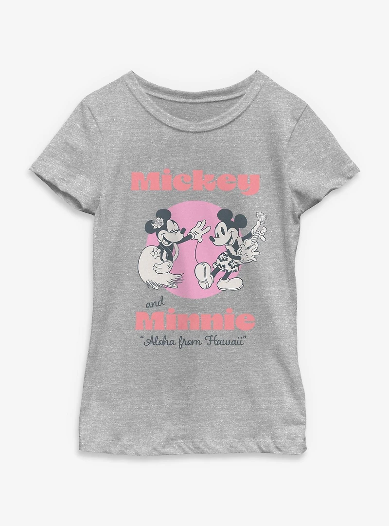 Disney Mickey Mouse & Minnie Mouse Aloha From Hawaii Youth Girls T-Shirt