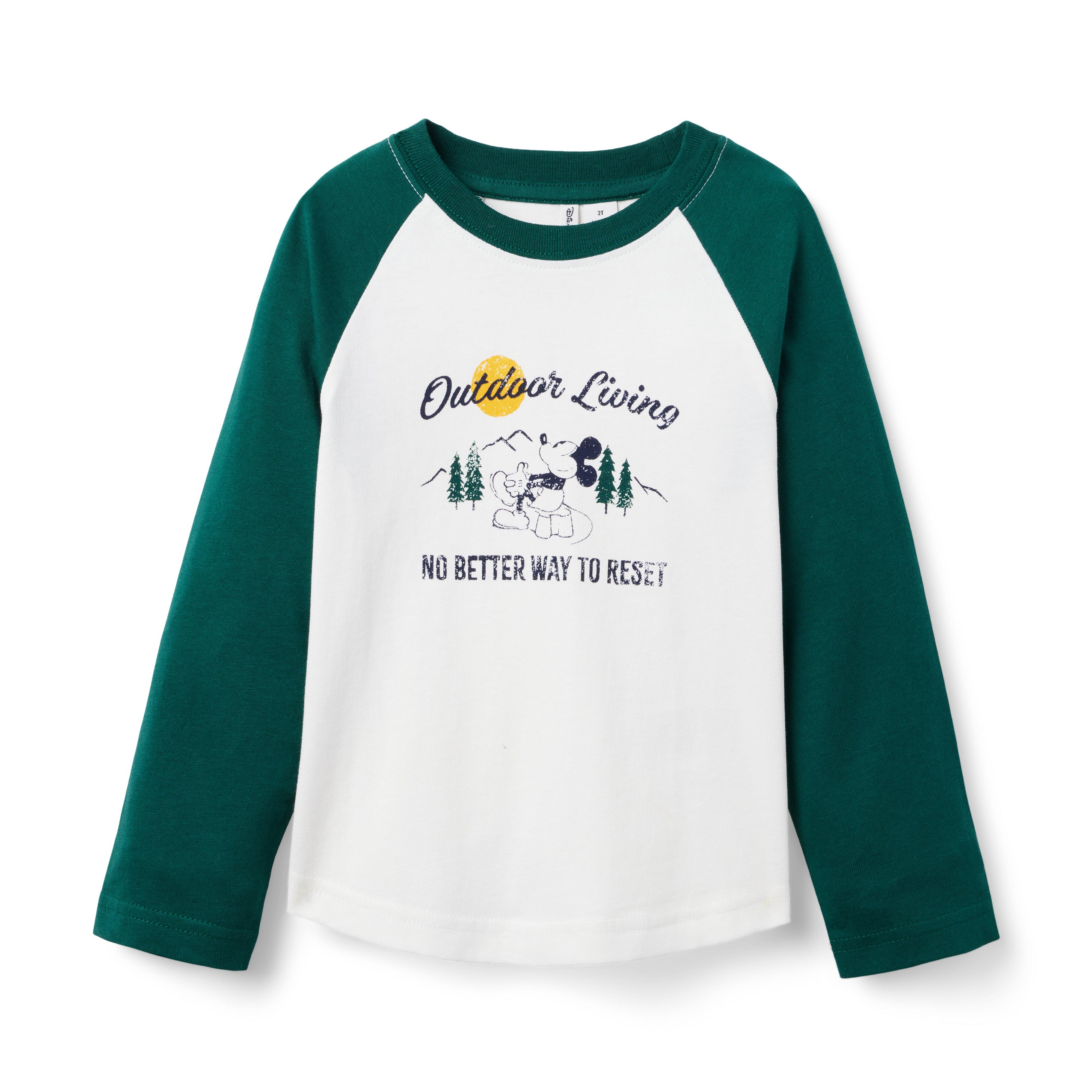 Explore the great outdoors with Disney's Mickey Mouse in our limited edition baseball tee. Detailed with a screenprinted graphic and classic raglan sleeves. 100% Cotton Jersey Long Sleeve Machine Wash, Inside Out; Imported