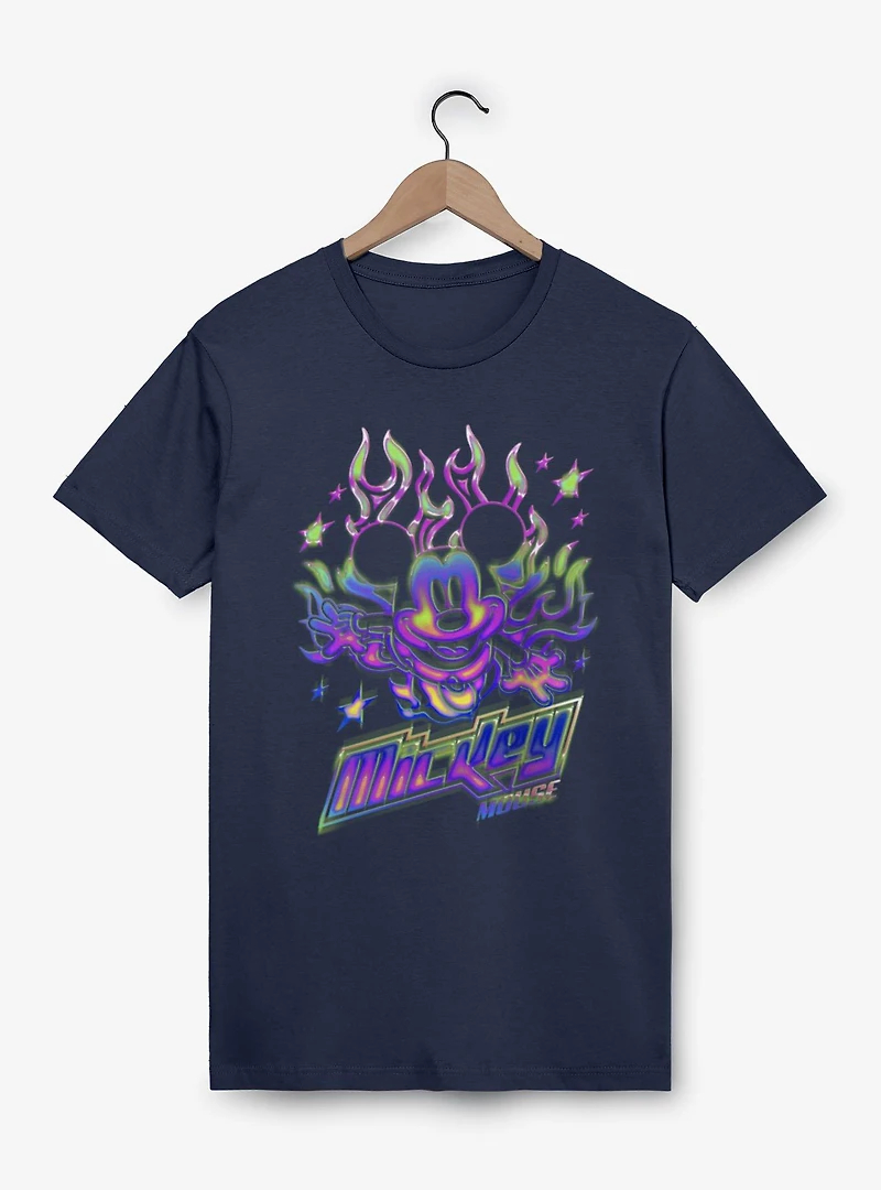 Disney Mickey Mouse Y2K Chrome Flames T-Shirt