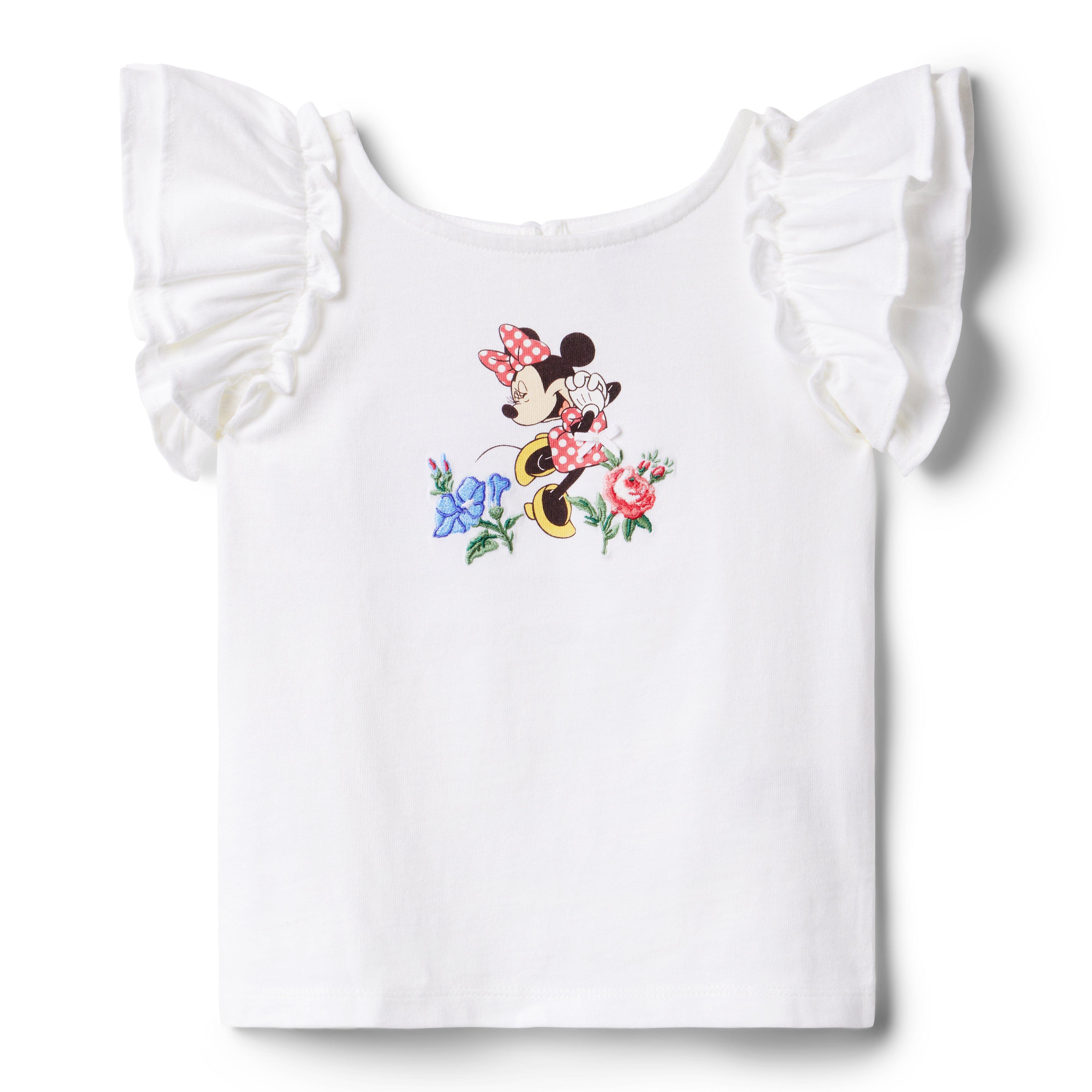 Follow the flowers to sunny days in our soft jersey screenprinted tee featuring Disney Minnie Mouse. Detailed with embroidery, a grosgrain bow and flutter sleeves. 100% Cotton Jersey Keyhole Button Back Short Sleeve Online Exclusive Machine Wash, Inside Out; Imported