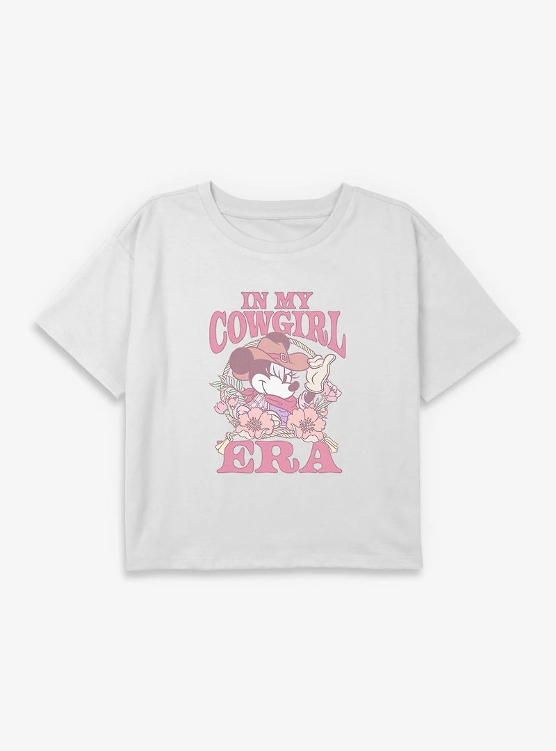 Disney Minnie Mouse In My Cowgirl Era Youth Girls Boxy Crop T-Shirt
