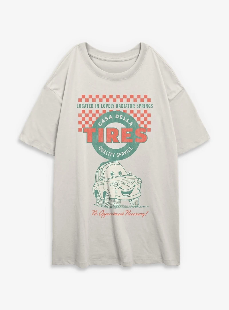 Disney Pixar Cars Casa Della Tires Quality Service Womens Oversized T-Shirt
