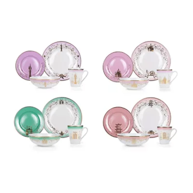 Add a bit of disney magic to your next dining party with this magnificent 16-piece ceramic dinnerware set! Featuring ornate flourishes and gorgeous accents, each of the four place settings features a unique disney princess theme: tiana (the princess and the frog), rapunzel (tangled), aurora (sleeping beauty), and mulan (mulan)! The complete 16-piece set includes four 12-ounce mugs, four 2-cup capacity bowls, four 10.75-inch dinner plates, and four 7-inch dessert plates. This stunning set will make any meal magical! Officially-licensed disney product.