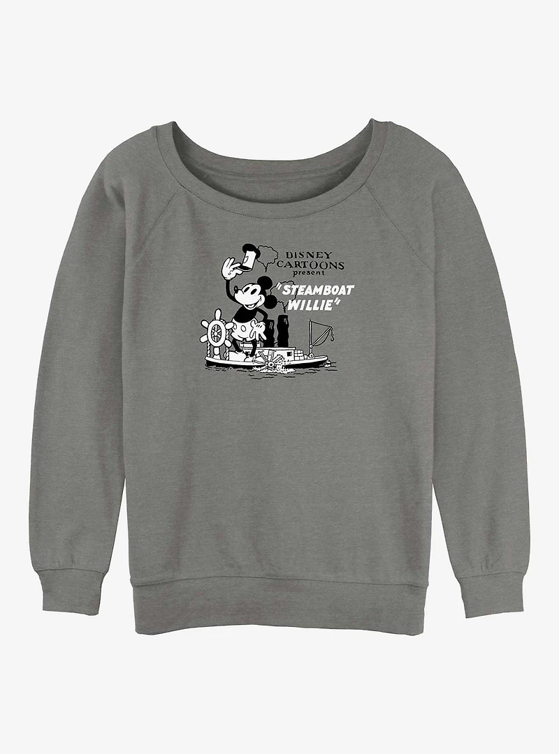 Disney100 Steamboat Willie Cartoon Girls Slouchy Sweatshirt