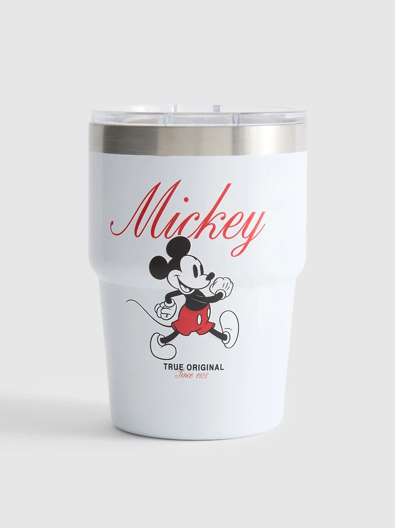 A travel coffee mug with classic Disney's Mickey Mouse design