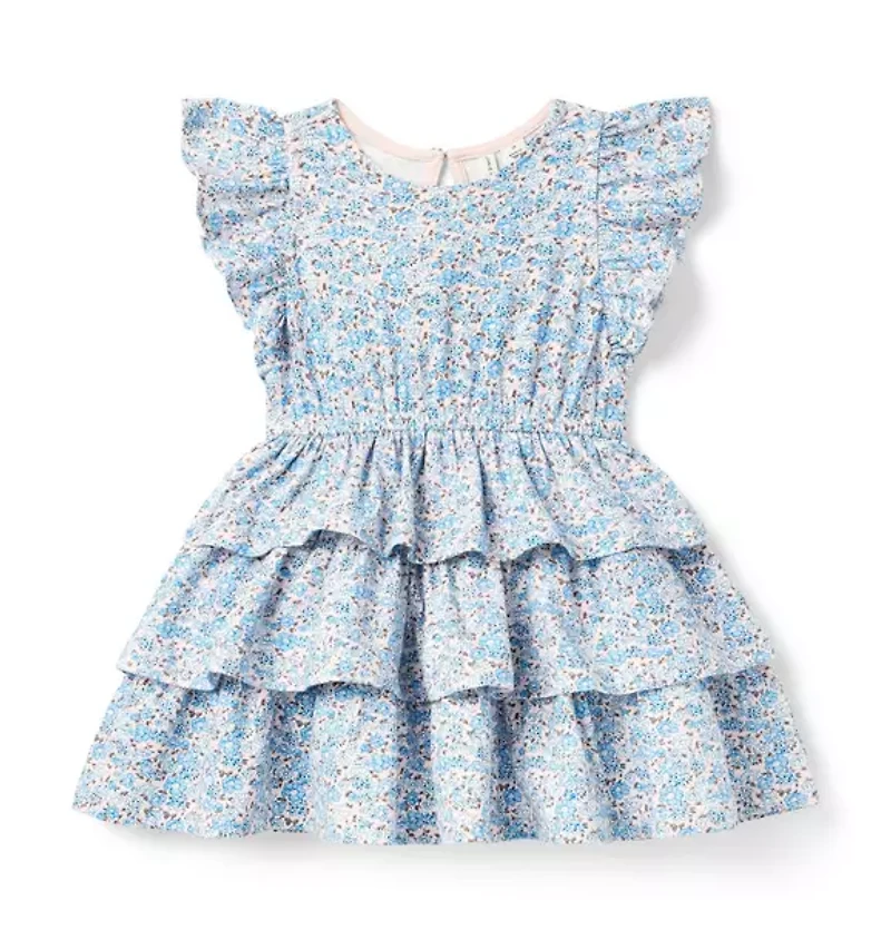 Tiered ruffles, ditsy florals and flutter sleeves too—all the details we love for our pure cotton dress. Style it your way. 100% Cotton Jersey Short Sleeve Keyhole Button Back Elasticized Waist Bloomer Included (Sizes Up To 18-24M) Machine Washable; Imported