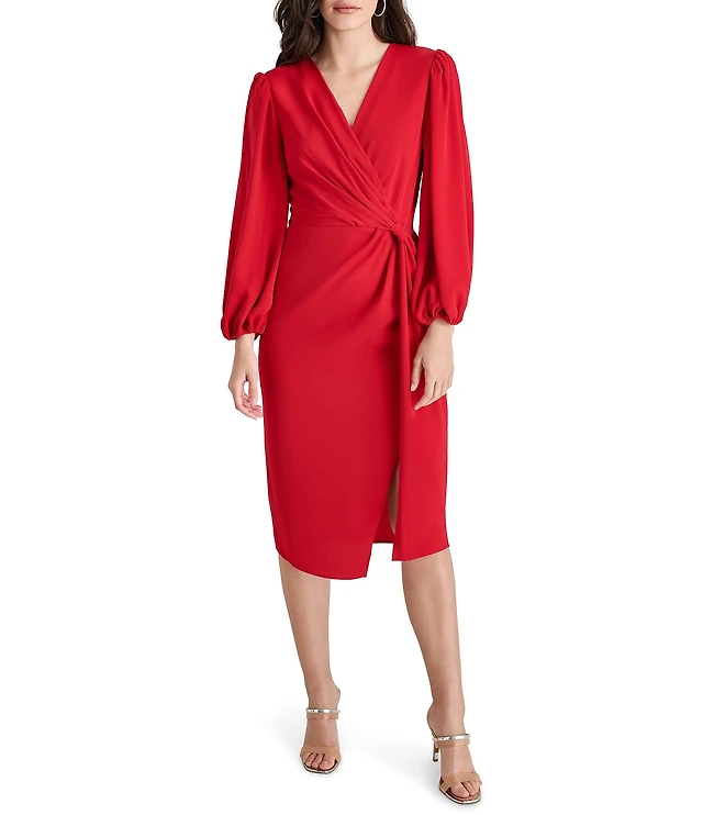 DKNY by Donna Karan Balloon Sleeve Faux Wrap High-Low Midi Dress