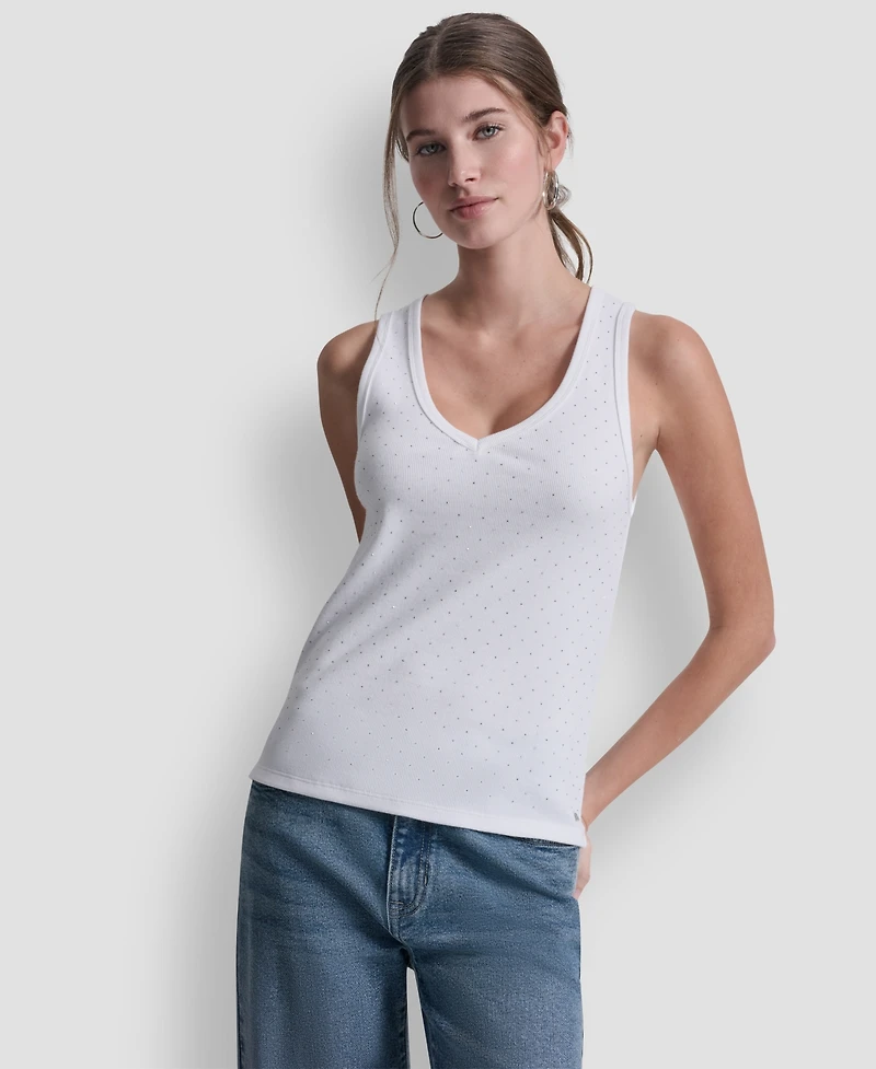 Dkny Jeans Women's Rhinestone V-Neck Tank Top
