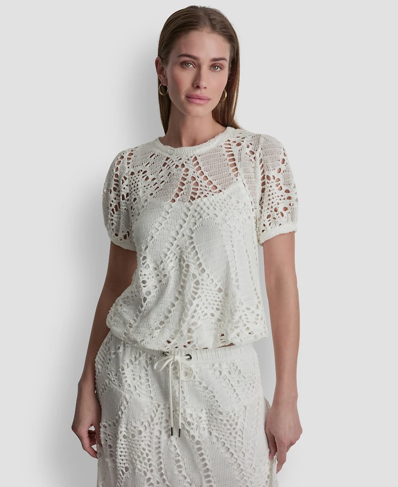 Dkny Women's Leaf Crochet Short-Sleeve Top