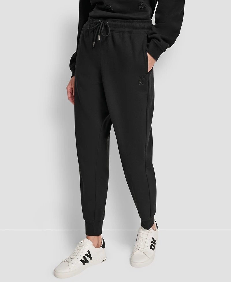 Dkny Women's Stacked Mini Rhinestone Logo Relaxed Cuff Jogger