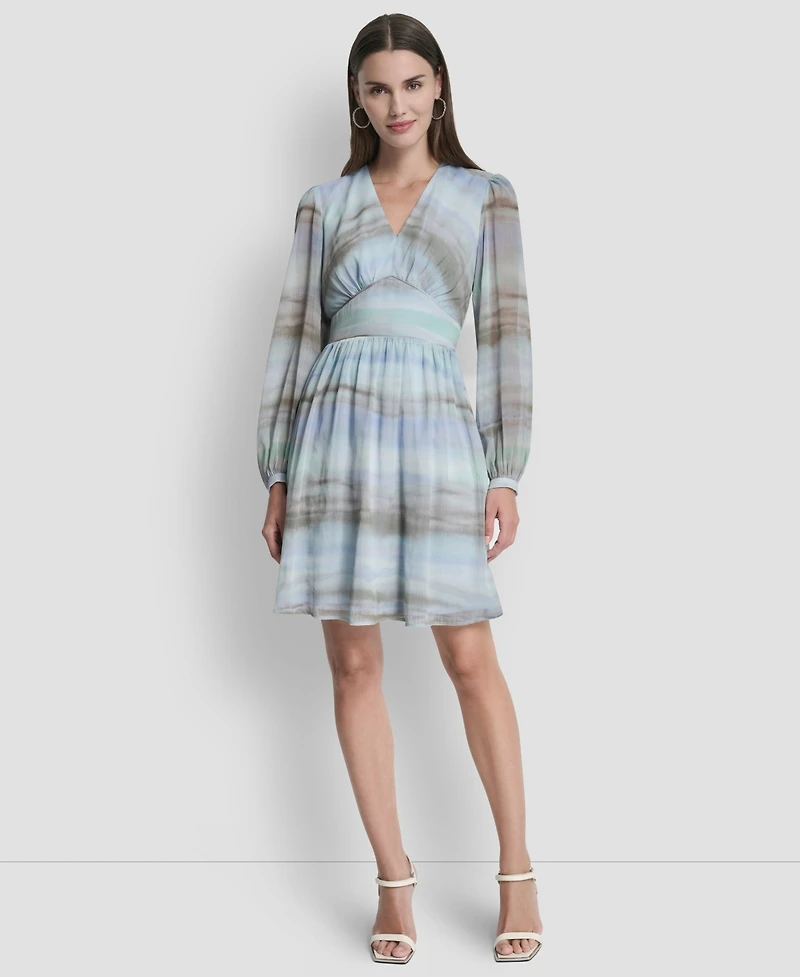 Dkny Women's V-Neck Smocked Waist Fit and Flare Dress