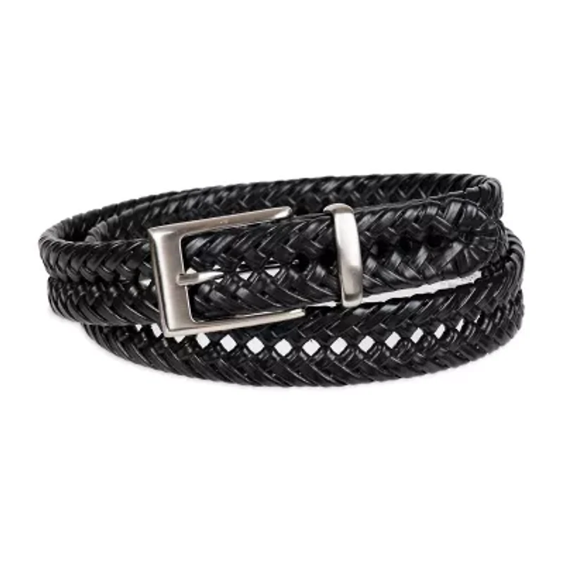 Add texture to your formal looks with this Dockers men's braided belt. Made from black faux leather, it finishes with a sleek silver-tone buckle.