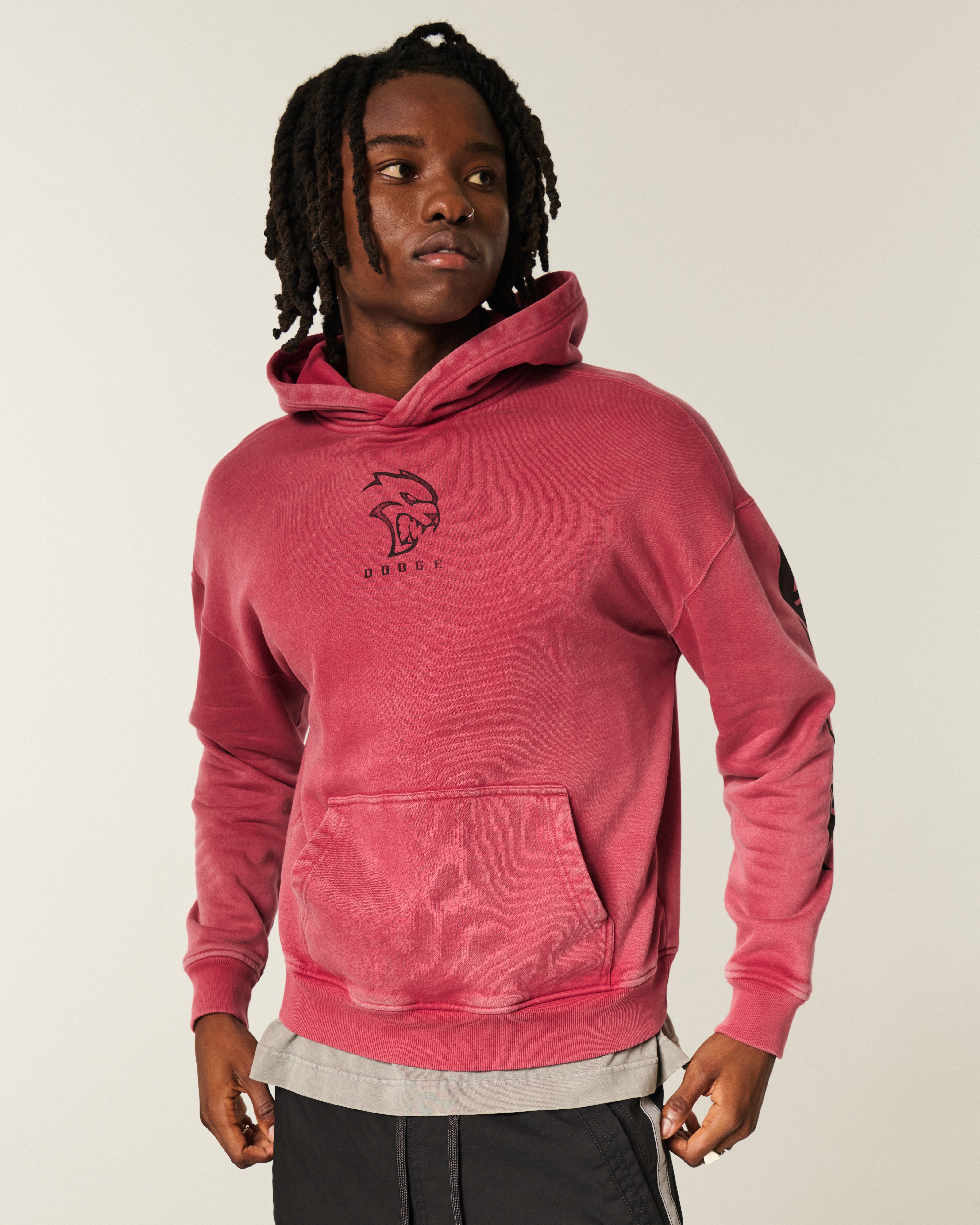A super soft fleece hoodie featuring official licensed Dodge Hellcat print graphics at the front and across the back and sleeves. Long sleeves, hood, front pouch pocket. Imported.