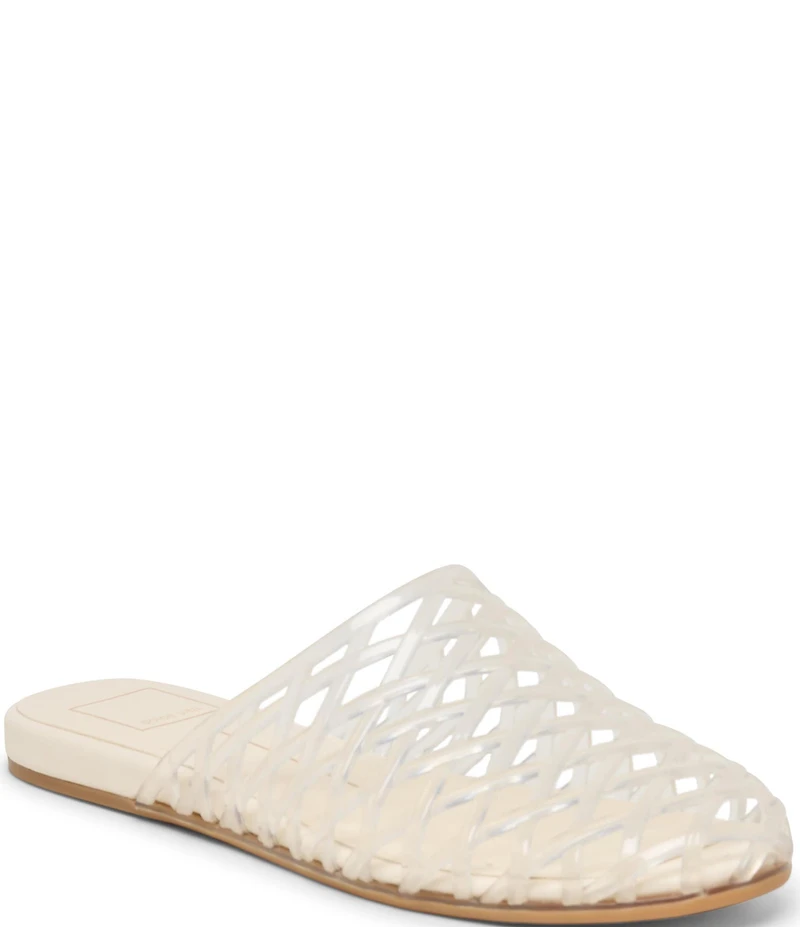 From Dolce Vita, the Ginna Woven Jelly Flat Mules feature: Vinyl upper Slip on styling Recycled synthetic outsole Approx. 0.5" heel height Imported.