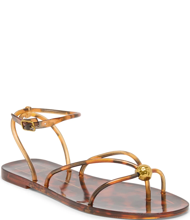 Dolce Vita Kenley Tortoise Vinyl Strappy Hardware Ankle Wrap Sandals