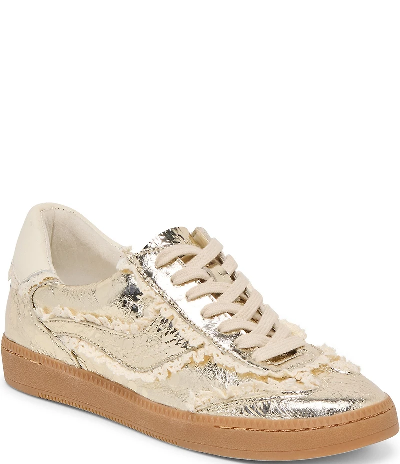 Dolce Vita Notice Crushed Leather and Lace Retro Sneakers