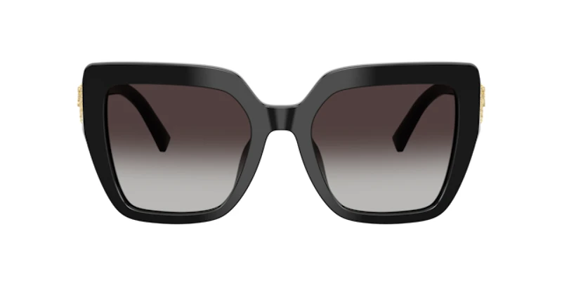 Elevate your style with the dolce&gabbana dg4538 sunglasses, showcasing square frames crafted from polished plastic in sleek black. The iconic cuore devotion embellishment adorns wide acetate temples, bringing a touch of luxury. Grey gradient lenses offer sophistication along with dependable sun protection. Designed with a universal fit for everyday comfort, these bestselling dolce&gabbana sunglasses are a statement in modern elegance.