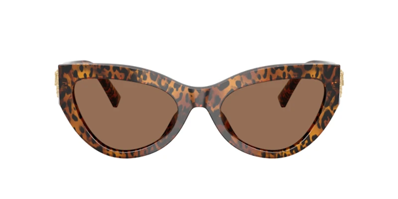 The dolce&gabbana dg4536 sunglasses exude elegance with their striking cat-eye frames in a rich brown hue. Crafted from polished plastic and featuring wide acetate temples, they showcase refined metal detailing near the hinges. The iconic cuore devotion emblem adds a touch of timeless sophistication. These brown sunglasses feature solid brown lenses that enhance the stylish design while providing advanced uva/uvb protection.