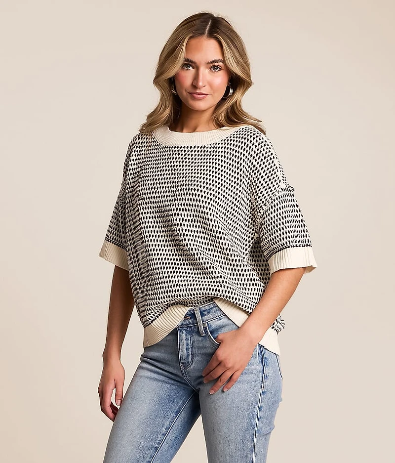 Textured open weave sweater Exposed seam details Bust measures 44 1/2" on size small Body length 22" on size small