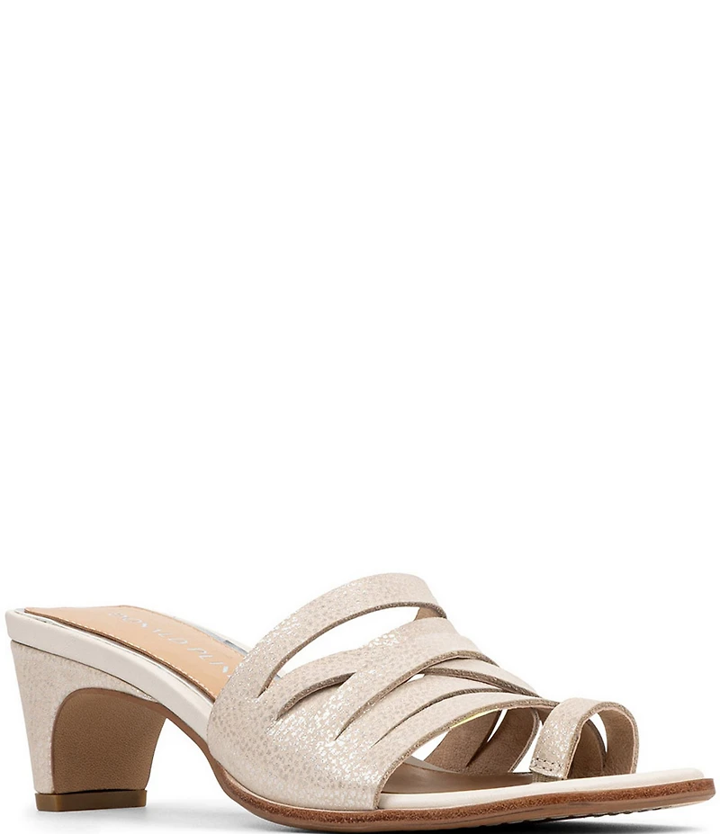 From Donald Pliner, the Dayvi Metallic Tumbled Leather Toe Ring Dress Sandals feature: Metallic tumbled leather upper Slip on with elastic walking gore Leather lining Memory foam padded insole Synthetic outsole Approx. 2" covered heel height Imported.