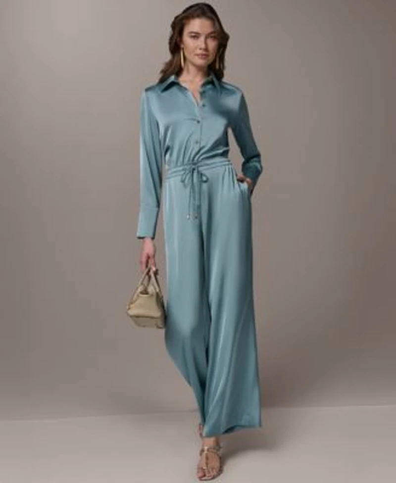 Donna Karan New York Womens Exposed Buttons Collared Blouse Pull On Mid Rise Pants in Franklin, TN
