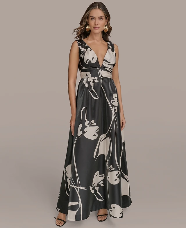 Donna Karan New York Women's Printed V-Neck Sleeveless Gown