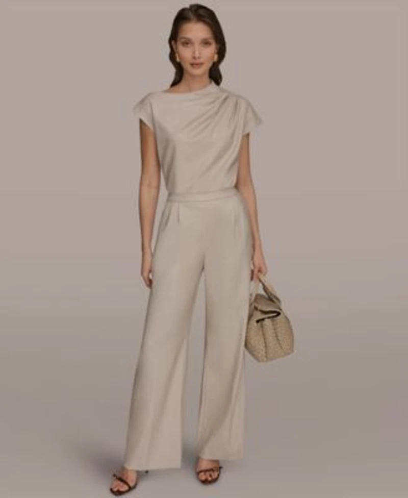 Donna Karan New York Womens Straight Leg Tie Waist Pants Draped Neck Blouse