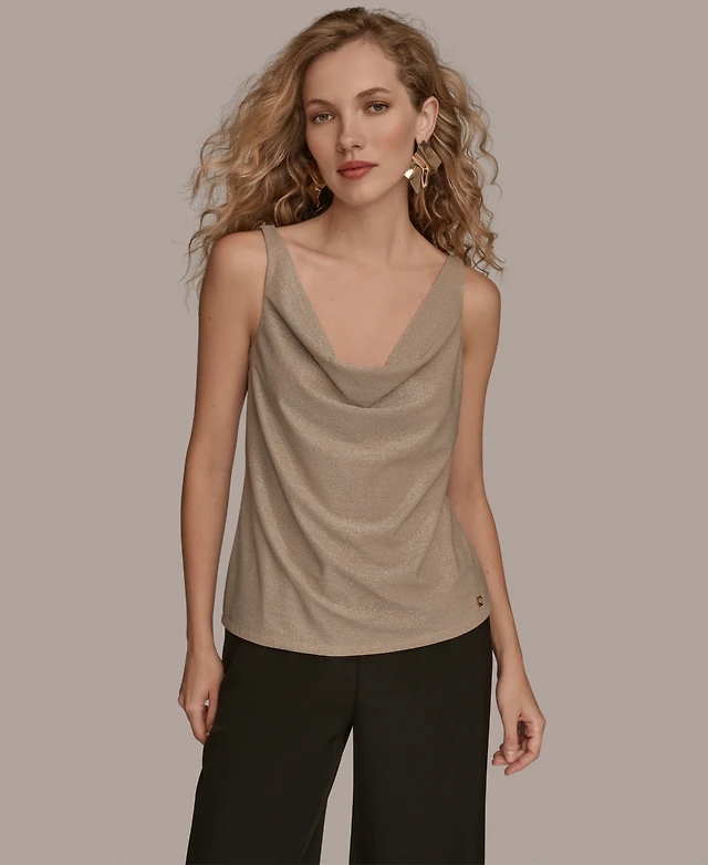 Donna Karan New York Women's Twist Shoulder Cowl Neck Sleeveless Camisole Top