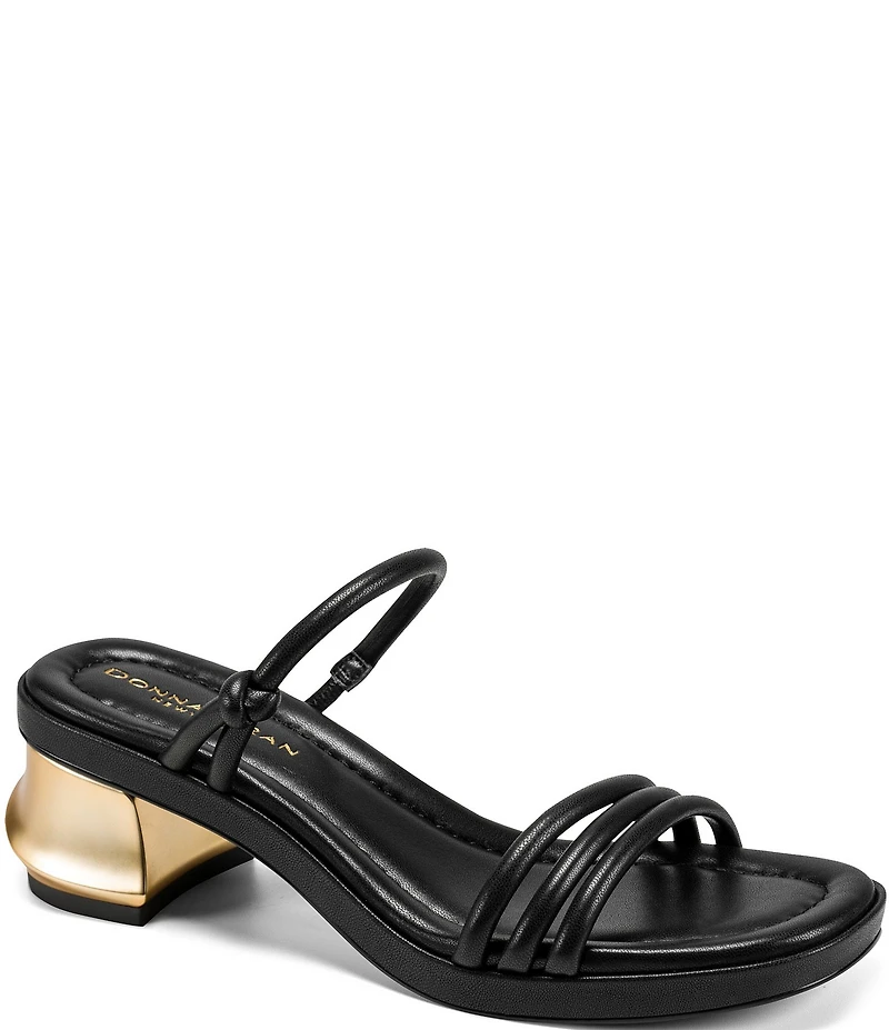 Donna Karan Tafeta Banded Sculpted Metal Block Heel Slide Sandals
