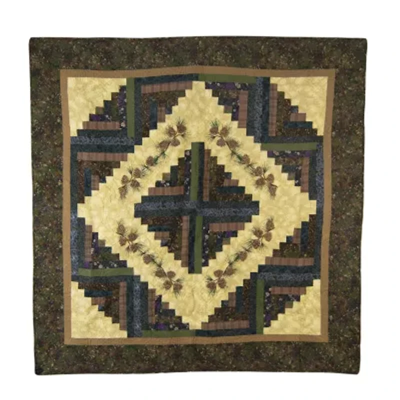 Cabin raising pine cone by donna sharp is the aesthetic blend of complementing colors perfectly accenting any rustic theme. This unique cotton throw design blends pine cones around a diamond-shaped centerpiece for a stunning effect bringing a tranquil forest right to your door! Colors include vanilla, chestnut brown, deep slate blue/teal, olive and caramel. Coordinates with donna sharp's cabin raising pinecone quilted bedding collection. Made of heavyweight 100% cotton, prewashed to prevent shrinkage and fading, dimensions: 60" x 60".