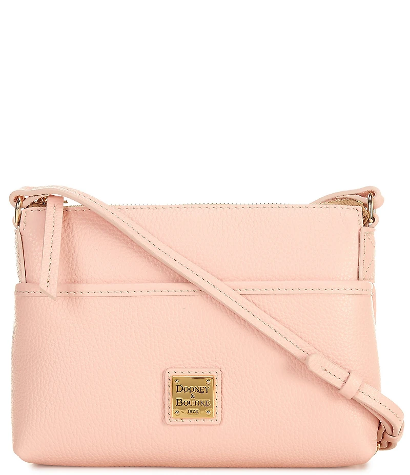 From Dooney & Bourke, this crossbody bag features: Rich European pebble grain leather Lined Zip closure One outside pocket One inside zip pocket Two inside pockets Cell phone pocket Approx. 25" adjustable strap drop Approx. 8.5" L x 2" W x 6.25" H Imported.