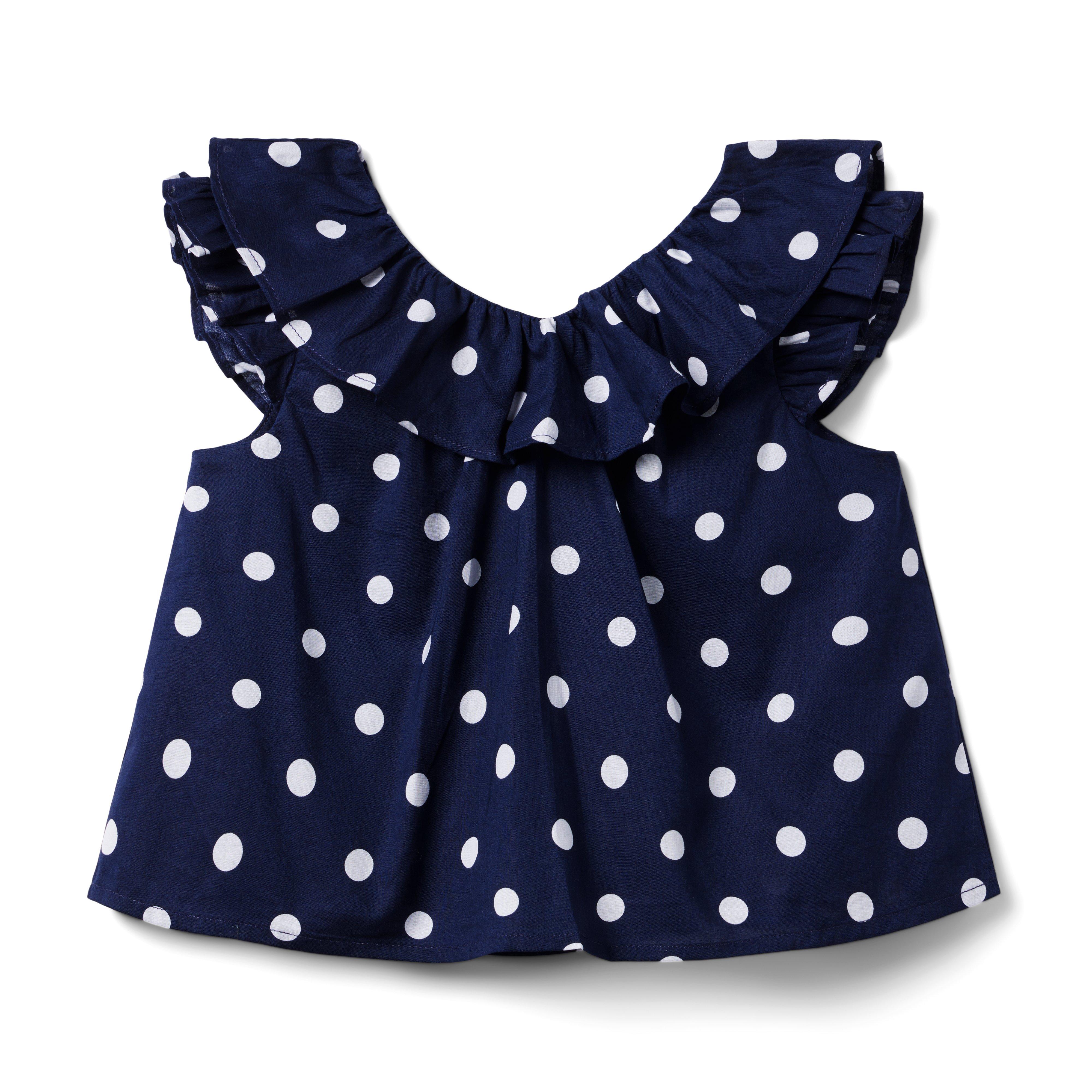 Spot on style for sunny days. Our pure cotton top features a ruffled neckline and flutter sleeves, just for the frill of it. 100% Cotton Batiste Fully Lined Short Sleeve Button Back Slightly Cropped Length Online Exclusive Machine Washable; Imported