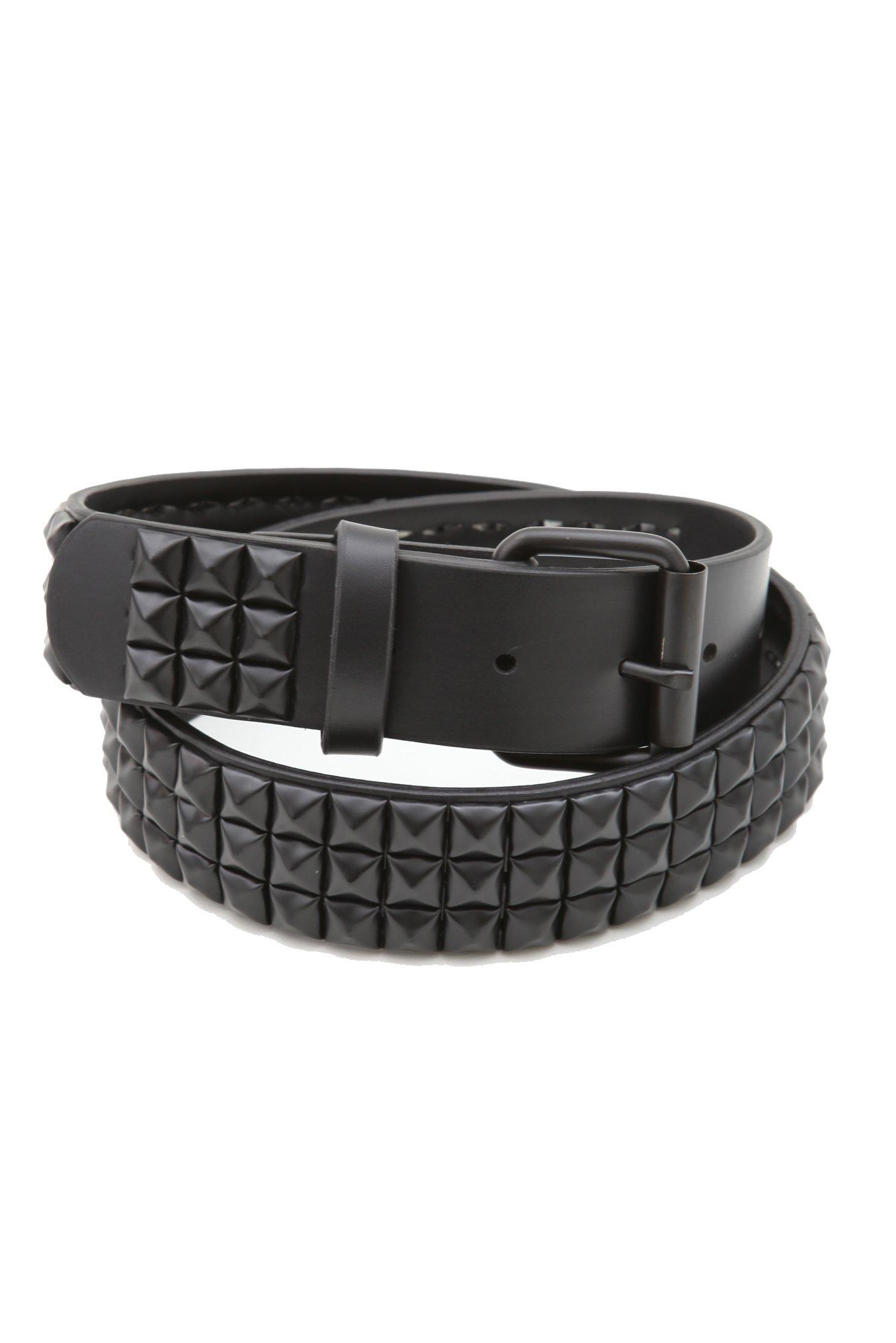This black belt features three rows of black pyramid studs. XS: 25 XL: 41 S: 29 2X: 45 M: 33 3X:49 L: 37 4X: 52