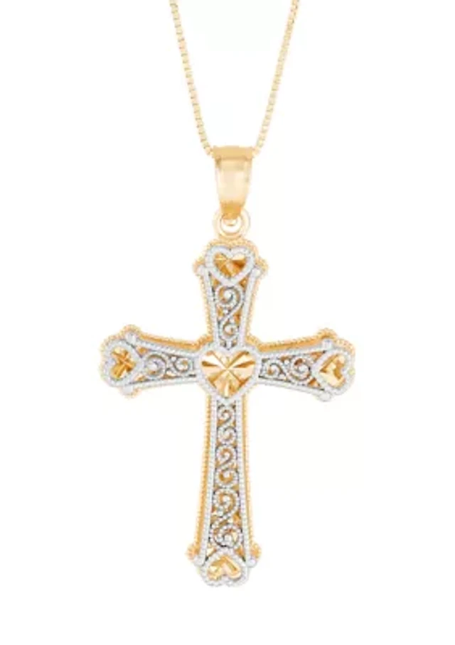 Swirl Cross Pendant in 14k Yellow and White Gold