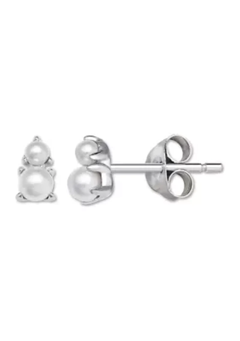 Double Pearl Stud Earrings in Sterling Silver