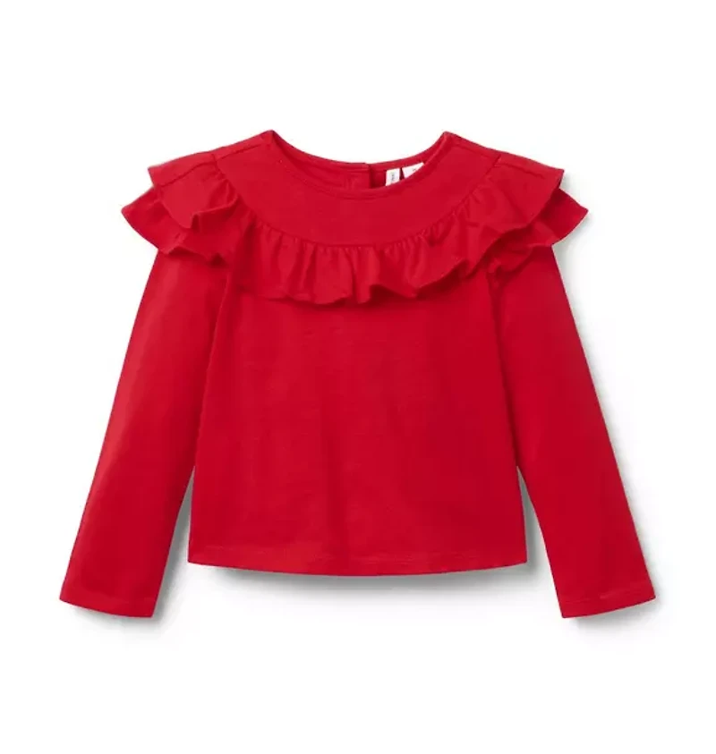 A wardrobe favorite for getaways or any day. Our top in pure cotton jersey features ruffle details for extra frills. 100% Cotton Jersey Long Sleeve Button Back Machine Washable; Imported