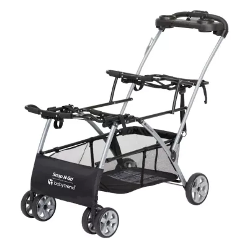 The Baby Trend® Universal Double Snap-N-Go® allows you to place 2 infant car seats onto it without removing your children from the car seat. It features a parent tray with 2 cup holders and a covered storage compartment. This stroller has a convenient one hand fold and comes with a large drop down storage basket. For stability, this stroller features rear wheels with brakes. Warranty available Imported Care Spot clean only